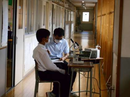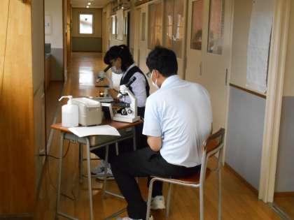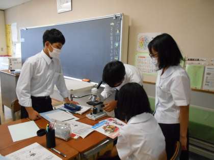 理科の授業では、教室内で手順の確認をしながら、顕微鏡の使い方の実技テストを、一人ずつ順番に行いました。