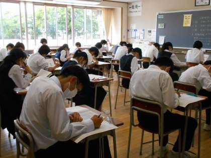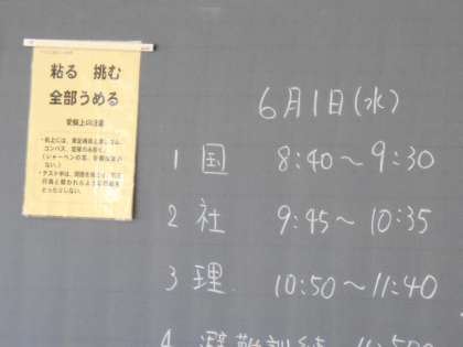 明日は、英語と数学です。ワークやまとめのプリント等、練習問題で間違ったものに再度取り組み、理解を進めてから明日のテストに臨むようにしましょう。