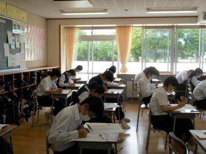 明日は、英語と数学です。ワークやまとめのプリント等、練習問題で間違ったものに再度取り組み、理解を進めてから明日のテストに臨むようにしましょう。