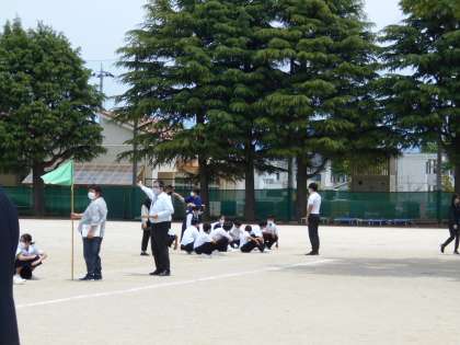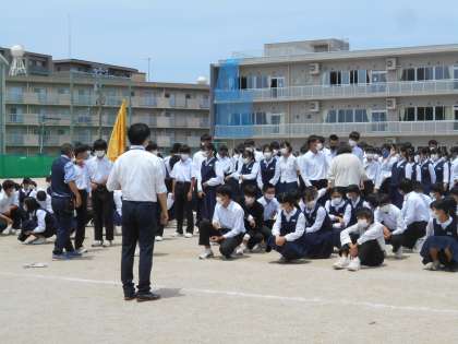 4限目に、今年度初めての避難訓練を行いました。家庭科室からの出火という想定で、放送内容をしっかり聞くこと、適切な順路で避難することを目標に行いました。