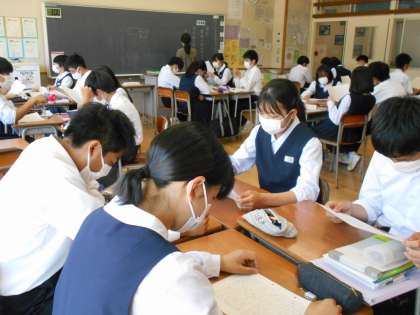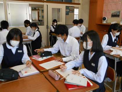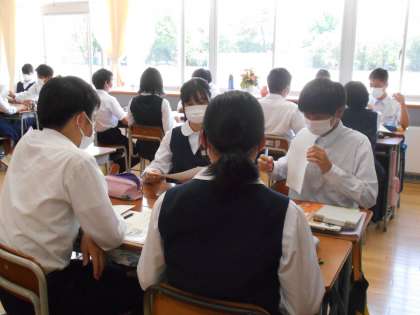 国語の授業では、「握手」の書評を互いに読み合うことで、自分とは違った考え方に触れ、さらに自分の考えを深めることができました。