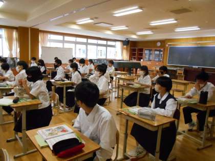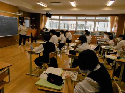 音楽の授業では、合唱コンクールの準備が始まりました。今日は、全員で指揮の練習もするようです。