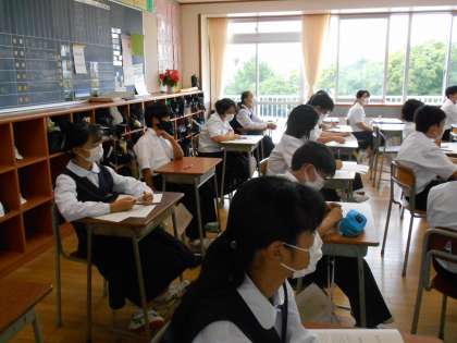 社会の授業は、テストの振り返りでした。ちょっとした答え方の間違いで、点数を落とした例もたくさんあったようです。