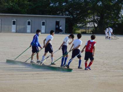 各部活動の片付けの様子です。コート整備や用具の片付けを手分けして進めていました。