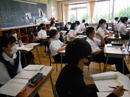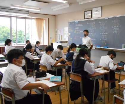 数学の授業では、符号に注意して、乗法の計算をすることに取り組みました。