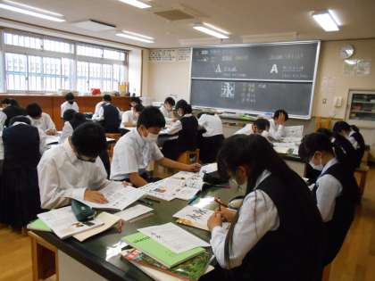 美術の授業では、レタリングに取り組んでおり、ゴシック体と明朝体の違いに注意しながら、明朝体で文字を書く練習をしました。