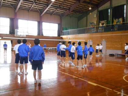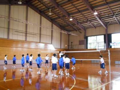 男子保健体育の授業はバレーボールでした。2コートに分かれて、スパイクの練習をしました。