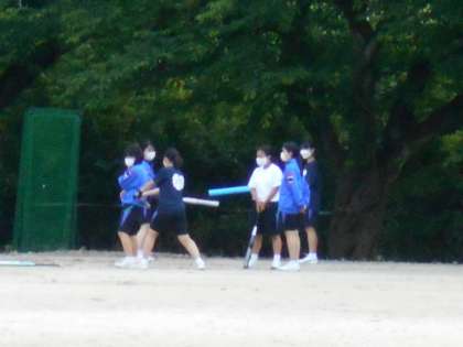 ソフトボール部の様子です。今日は部室前の狭いスペースでしたが、バッティング練習やキャッチボールの練習をしました。