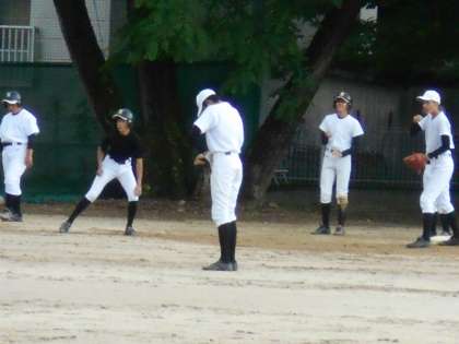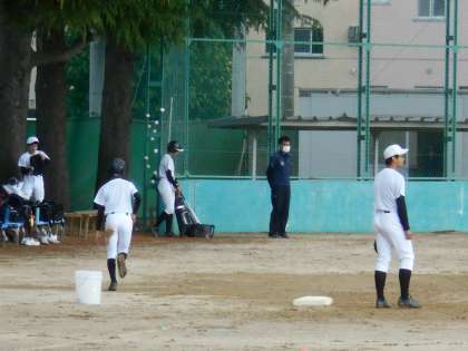 野球部の様子です。来週の富山市総合選手権大会をイメージして、守備練習や走塁に取り組みました。