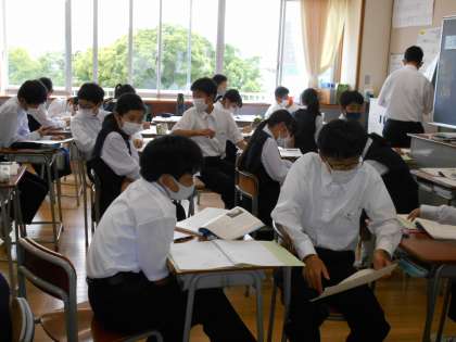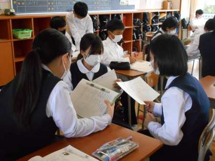 国語の授業では、「ちょっと立ち止まって」という教材を読み、結論を参考にして文章の要旨をまとめた後、意見交換する時間もありました。