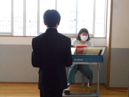 音楽の授業では、順番に歌唱テストを行いました。順番を待つ表情は、幾分緊張しているようでした。