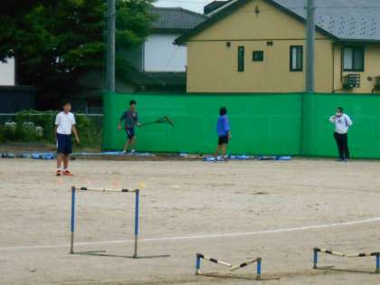 陸上競技部は、小雨の中、各自が出場する種目の練習をしていました。