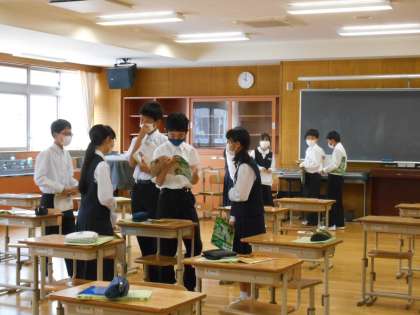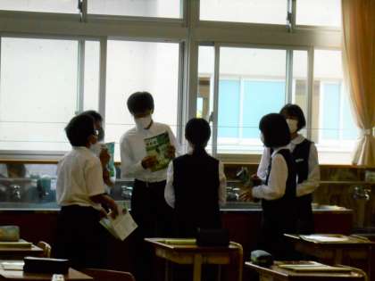 音楽の授業では、「We'll Find the Way」という曲を歌うときはどのように表現するとよいか、グループで意見を出し合い、パートの確認もしました。