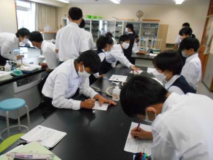 理科の授業では、化学変化のとき、どのような場合でも熱が出るのか実験で確かめました。