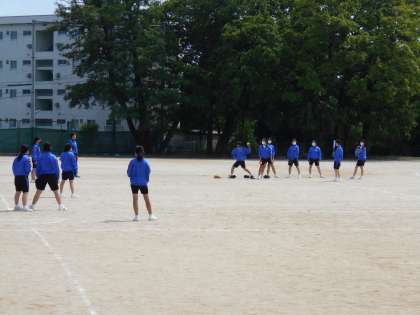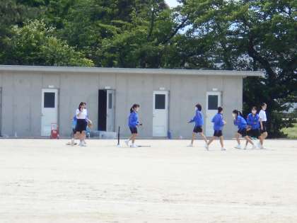 女子保健体育の授業ではソフトボールに取り組んでおり、ティーボールの用具を使って練習をしました。