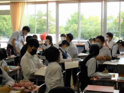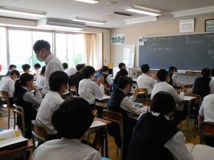 英語の授業では、「宝くじが当たったら…」という設定で、ifを使って表現することに取り組みました。いろいろな答があり、互いの考えを知ることを楽しんでいました。