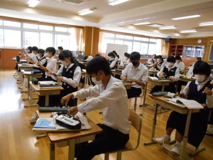 音楽の授業では、コロナ感染対策を講じながら、リコーダーの練習に短時間取り組みました。