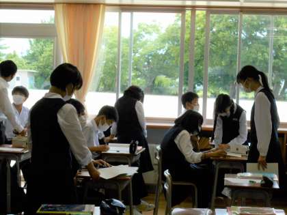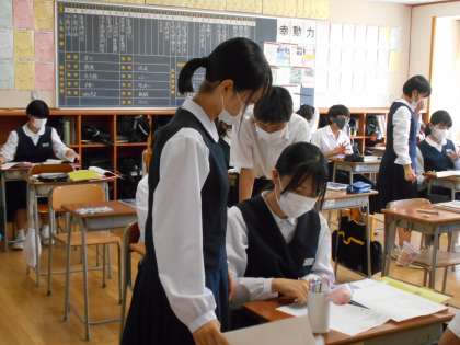 英語の授業では、現在完了を使った問答の仕方について復習をし、教え合う時間もありました。