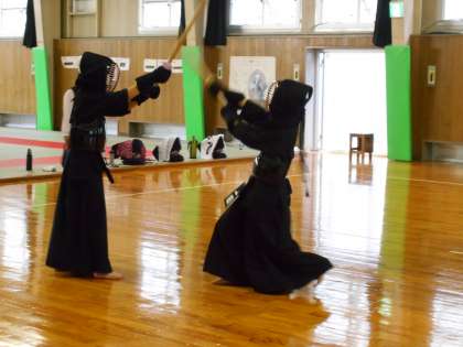 剣道部も試合形式で練習をしながら進めており、審判の練習にもなったようです。