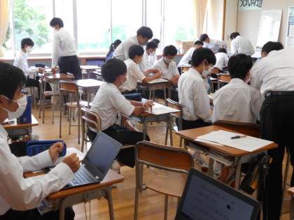 事業所訪問に向けて、初めて事業所別の打ち合わせを行いました。事業所訪問の日時確認の電話をするために、担当の先生から必要なことを聴いたり、学校から事業所、自宅から事業所までの経路を調べたりしました。