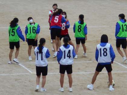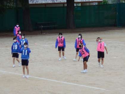 女子保健体育の授業ではサッカーに取り組みました。みんな生き生きとボールを追いかけ、ゴールすると歓声が上がっていました。