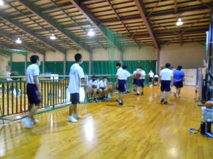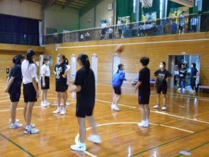 バスケットボール部の様子です。女子はコートを使って、男子はピロティーでドリブルの練習をしました。
