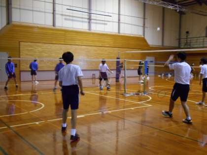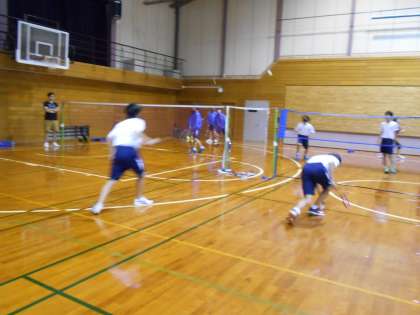 バドミントン部の様子です。男子はコートを使っての練習、女子は階段でトレーニングをしていました。