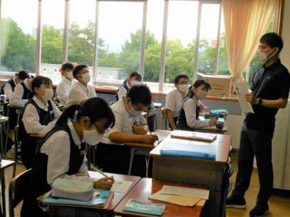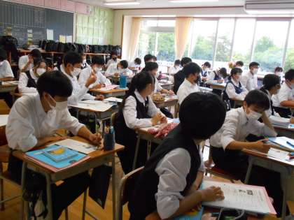 英語の授業では、「I think〜.」という表現を使って、自分の考えを主張することに取り組みました。