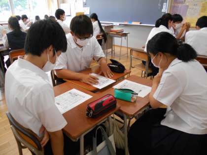 今日のNTの学び合いは、「マスク着用 熱中症注意」という記事について意見交換しました。富山県内では、最高気温が25度以上の日が続いています。温度調整できる服装や、体育や部活動でのマスクの有無について話し合っている姿が見られました。