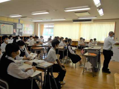「50年後の未来に伝えたい!『現代』を教科書にしよう。」という課題に向けて題材を出し合いました。このクラスでは、東京オリンピック2020の他に、コロナ、半導体不足、LGBTQといったことが、題材の案としてあがりました。