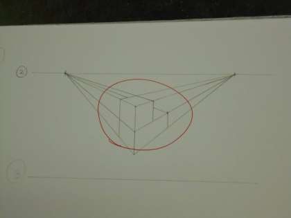 美術の授業では、遠視図法の3つ、一点遠視図法、二点遠視図法、三点遠視図法をマスターするために、いろいろな図を書いてみました。