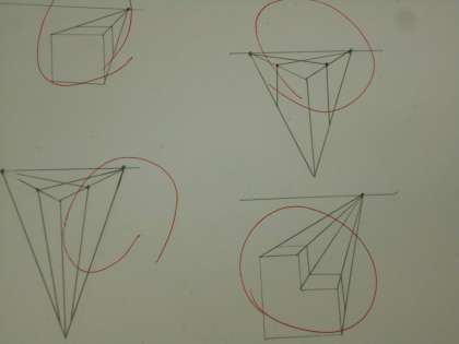 美術の授業では、遠視図法の3つ、一点遠視図法、二点遠視図法、三点遠視図法をマスターするために、いろいろな図を書きました。
