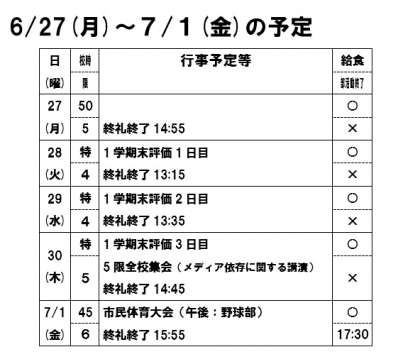 6月27日(月)〜7月1日(金)の予定
