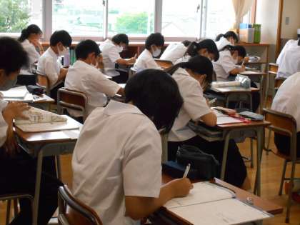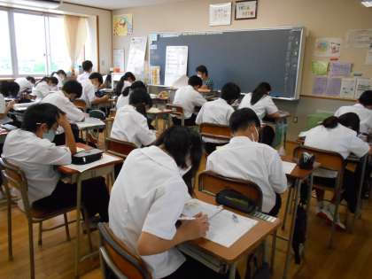 英語の授業では、ワークやプリントを使って、これまでの復習をしました。