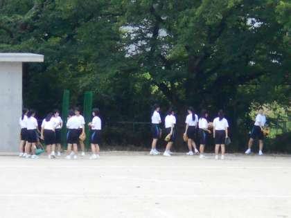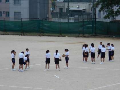 女子保健体育ではソフトボールに取り組んでおり、チームごとに打合せをしてから、対戦しました。