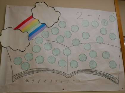 執行部の企画で行っている「ありがとうメッセージ」の掲示物です。毎日の学校生活の中に、友達へ、先輩へ、後輩へ、委員へといろいろなことに対する「ありがとう」があるのだなあと温かい気持ちになりました。