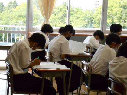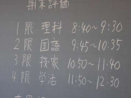 明日は、保健体育、音楽、英語の3教科です。これまで学習に使った教科書やノート、ワーク等を見直しておきましょう。