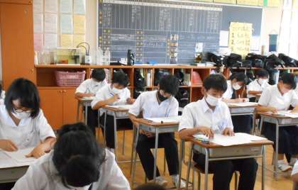 明日は、保健体育、音楽、英語の3教科です。これまで学習に使った教科書やノート、ワーク等を見直しておきましょう。