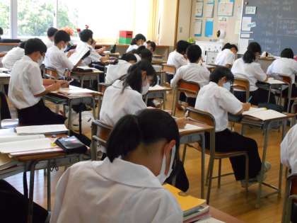 英語の授業では、期末評価を次に生かすために、自分の苦手なところを確認し、手立てを考えました。