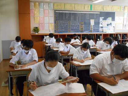 国語の授業では、テストの振り返りをし、分からないところは質問し解決しました。