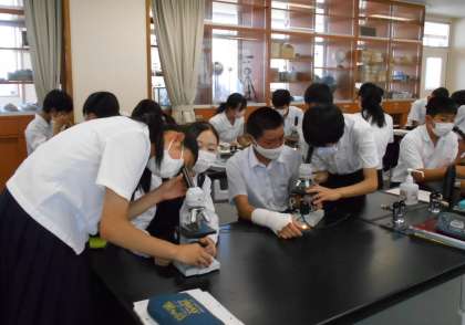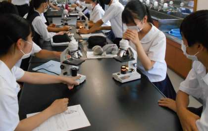 理科の授業では、顕微鏡の使い方の復習をしました。1年生の復習ですが、さすが3年生。覚えている人が多かったようです。