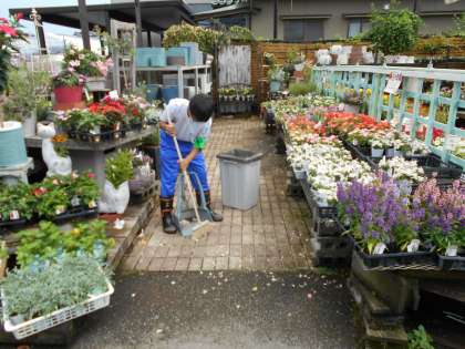お花の手入れや店内の掃除に励みました。お客さんに喜んでもらえるように、丁寧に花を扱ったり、綺麗に掃除をしたりしていました。
