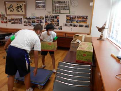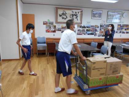 「お客様」への配達第1号が南部中学校だったそうで、緊張している様子でしたが、飲み物を冷蔵庫に入れる作業もしてくれました。終わった後は、「ありがとうございました。」とあいさつして、事業所に戻っていきました。