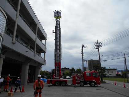 生徒たちは消防署にある様々な車両の説明をメモを取りながら真剣に聞いていました。また、体力も必要とのことで30mリレーや腹筋等のトレーニングをしました。