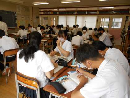 社会の授業では、現代社会の現象と問題点をまとめ、持続可能な社会づくりを考えました。
