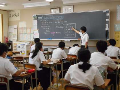 数学の授業では、2次の項を含む方程式について勉強しているクラスもありました。