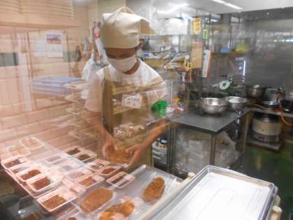 作りたての商品を店内に並べるための準備をしています。お客さんのために、一つ一つ丁寧に用意していました。