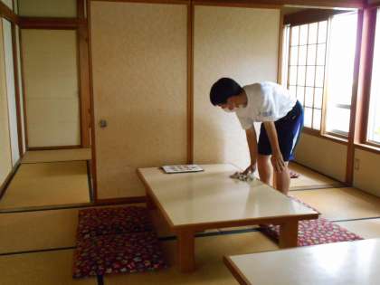 調理場の仕事を手伝ったり、店内の座布団やテーブルを用意したりしていました。お客さんが美味しい料理を綺麗な部屋で食べられるように、熱心に活動しています。