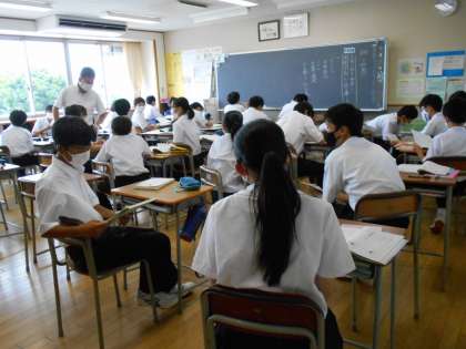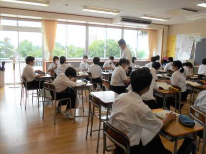 国語の授業では、三編の詩を参考に、途中情報交換しながら、表現を工夫して自分の詩を書くことに取り組みました。