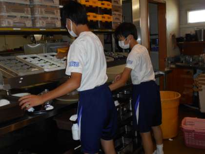 テーブルの片付けや店内の清掃を行いました。真面目に、手際よく行動する姿が見られました。